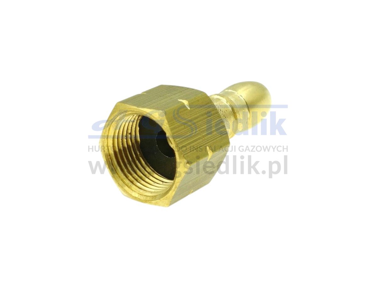Złączka z gwintem butli turystycznej, umożliwia podłączenie węża propan-butan bezpośrednio do butli, bez użycia reduktora.